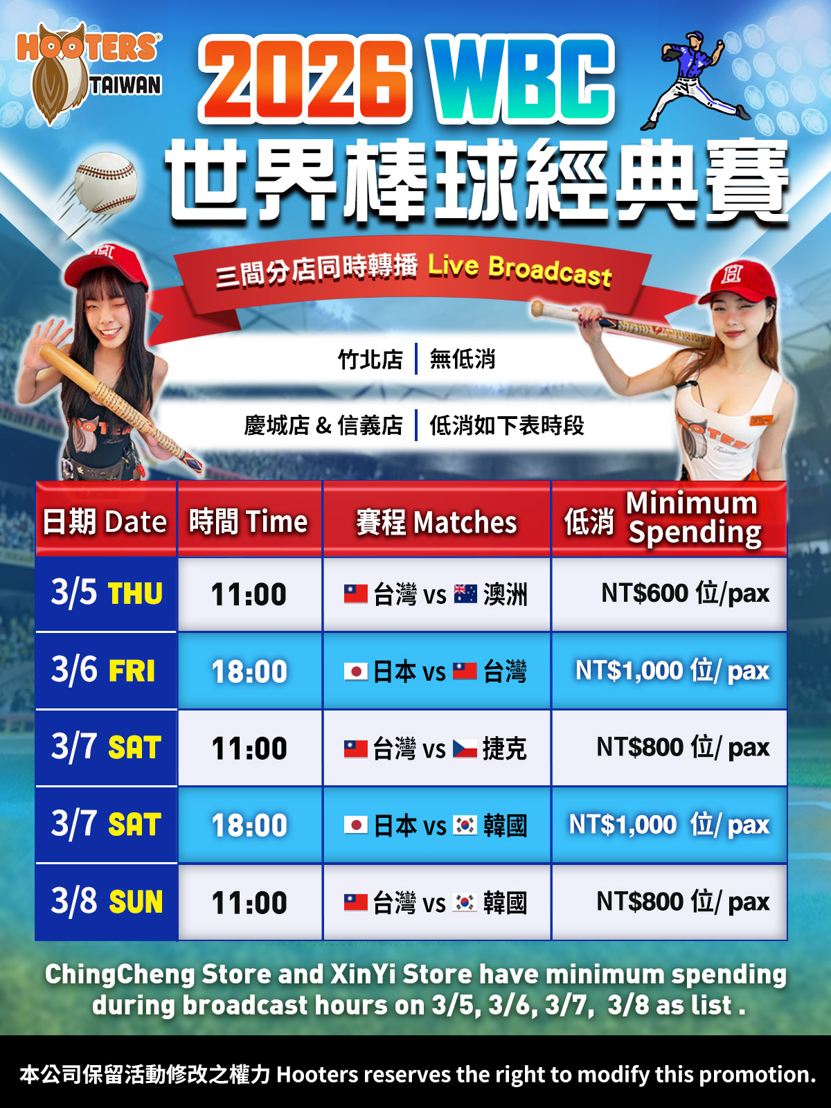 一起到 Hooters 現場看轉播,為台灣加油 💪🔥🔥