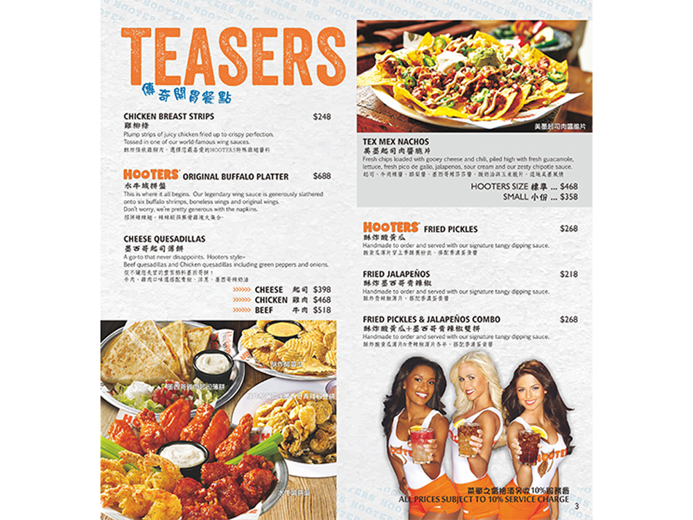 首頁 / 美味餐點 / 整份菜單 整份菜單All Menus 沙拉 SaladsTeasers 傳奇開胃餐點Teasers 經典摯愛 Flavor Tease 排餐 & 馬鈴薯家族Steak & Rib & Fries 海鮮Seafood 招牌辣辣翅Wings 三明治 & 漢堡Sandwich & Burgers 義大利麵Pasta 比薩 Pizza 巴哈玉米餅 & 湯品Tacos & Soup 甜點 & 兒童餐Desserts & Kids Menu 慶城店 歡樂午餐ChingCheng Store Lunch Special 信義店 歡樂午餐Xinyi Store Lunch Special 竹北店 歡樂午餐Zhubei Lunch Special 慶城店限定 六日早午餐-大份拼盤 慶城店 限定 早午餐 每週六、日10:~16:00 慶城店限定 六日早午餐-個人主餐 慶城店 限定 早午餐 每週六、日10:~16:00